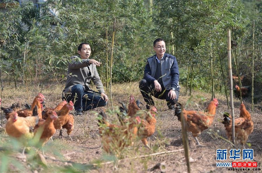 李寶強(qiáng)(右)在一戶百姓家了解林下養(yǎng)雞情況(2015年11月25日攝)。李寶強(qiáng),眉山市青神縣瑞峰鎮(zhèn)天池村“第一書記”。為集中力量打好脫貧攻堅戰(zhàn),四川省選派1.5萬名優(yōu)秀機(jī)關(guān)干部到建檔立卡貧困村任職“第一書記”。黨的十八大以來,以習(xí)近平同志為總書記的黨中央高瞻遠(yuǎn)矚、深謀遠(yuǎn)慮,以高度的政治感、使命感和責(zé)任感,把扶貧開發(fā)工作提升至治國理政新高度,廣泛凝聚社會各界力量,推進(jìn)實(shí)施精準(zhǔn)扶貧方略,為到2020年全面建成小康社會奠定堅實(shí)基礎(chǔ)。按照中央部署,通過產(chǎn)業(yè)扶持、轉(zhuǎn)移就業(yè)、易地搬遷、政策兜底等方式,到2020年將實(shí)現(xiàn)7017萬農(nóng)村貧困人口脫貧目標(biāo)。新華社記者 薛玉斌 攝