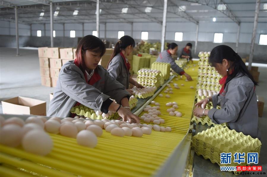 在貴州省畢節(jié)市七星關(guān)區(qū)五里坪村,當(dāng)?shù)剞r(nóng)戶在一個屬于精準(zhǔn)扶貧項(xiàng)目的養(yǎng)雞場內(nèi)分揀雞蛋(2015年11月15日攝)。畢節(jié)市自2014年開始“私人訂制”式精準(zhǔn)扶貧工作,根據(jù)當(dāng)?shù)刎毨魧?shí)際情況為其制定扶貧方案,扶貧變“輸血”為“造血”。黨的十八大以來,以習(xí)近平同志為總書記的黨中央高瞻遠(yuǎn)矚、深謀遠(yuǎn)慮,以高度的政治感、使命感和責(zé)任感,把扶貧開發(fā)工作提升至治國理政新高度,廣泛凝聚社會各界力量,推進(jìn)實(shí)施精準(zhǔn)扶貧方略,為到2020年全面建成小康社會奠定堅實(shí)基礎(chǔ)。按照中央部署,通過產(chǎn)業(yè)扶持、轉(zhuǎn)移就業(yè)、易地搬遷、政策兜底等方式,到2020年將實(shí)現(xiàn)7017萬農(nóng)村貧困人口脫貧目標(biāo)。新華社記者 潘昱龍 攝