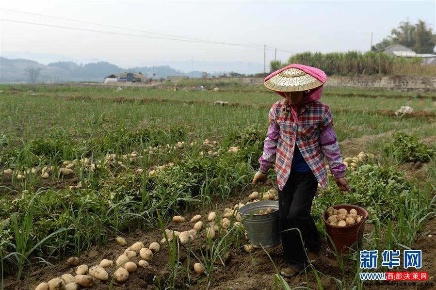 云南省德宏傣族景頗族自治州芒市軒崗鄉(xiāng)農(nóng)民提著采挖好的馬鈴薯準(zhǔn)備前去裝箱。當(dāng)?shù)伛R鈴薯每畝產(chǎn)值近6000元,是村民增收的主要途徑之一(2014年3月21日攝)。近年來,云南省大力推進(jìn)扶貧攻堅,走出了一條整村、整鄉(xiāng)、整縣、整州推進(jìn)的扶貧開發(fā)新路子。黨的十八大以來,以習(xí)近平同志為總書記的黨中央高瞻遠(yuǎn)矚、深謀遠(yuǎn)慮,以高度的政治感、使命感和責(zé)任感,把扶貧開發(fā)工作提升至治國理政新高度,廣泛凝聚社會各界力量,推進(jìn)實(shí)施精準(zhǔn)扶貧方略,為到2020年全面建成小康社會奠定堅實(shí)基礎(chǔ)。按照中央部署,通過產(chǎn)業(yè)扶持、轉(zhuǎn)移就業(yè)、易地搬遷、政策兜底等方式,到2020年將實(shí)現(xiàn)7017萬農(nóng)村貧困人口脫貧目標(biāo)。新華社記者 胡超 攝