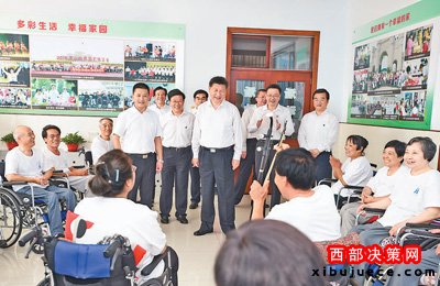 之后,習(xí)近平前往唐山市截癱療養(yǎng)院。他在康復(fù)室看望正在做康復(fù)訓(xùn)練的截癱傷員,一一了解他們的傷情和康復(fù)治療情況,問(wèn)他們還有什么困難,祝他們健康長(zhǎng)壽。在療養(yǎng)病室,他同因地震傷害截癱的楊玉芳、高志宏夫婦親切交談。得知他們長(zhǎng)期參加力所能及的勞動(dòng)和工作,努力融入社會(huì)、自食其力,習(xí)近平很高興。夫婦倆向總書(shū)記贈(zèng)送自己新近出版的小說(shuō)和詩(shī)歌集,并即興朗誦了一首歌頌解放軍當(dāng)年抗震救災(zāi)英勇事跡的詩(shī)歌,習(xí)近平稱(chēng)贊他們樂(lè)觀(guān)上進(jìn)、事跡感人,用行動(dòng)詮釋了生命的價(jià)值和意義?;顒?dòng)室內(nèi),10多位截癱傷員正在開(kāi)展文娛活動(dòng),習(xí)近平來(lái)到他們中間,同他們親切交談,并欣賞了二胡伴唱《唱支山歌給黨聽(tīng)》。習(xí)近平勉勵(lì)他們說(shuō),健全人可以活出精彩的人生,殘疾人也可以活出精彩的人生。我們每個(gè)人都要珍惜生命、追求健康,努力創(chuàng)造無(wú)愧于時(shí)代的精彩人生。習(xí)近平指出,大愛(ài)無(wú)疆,醫(yī)者仁心,醫(yī)護(hù)人員要樹(shù)立把傷殘人當(dāng)親人的思想,為傷殘人提供周到細(xì)致的服務(wù)。