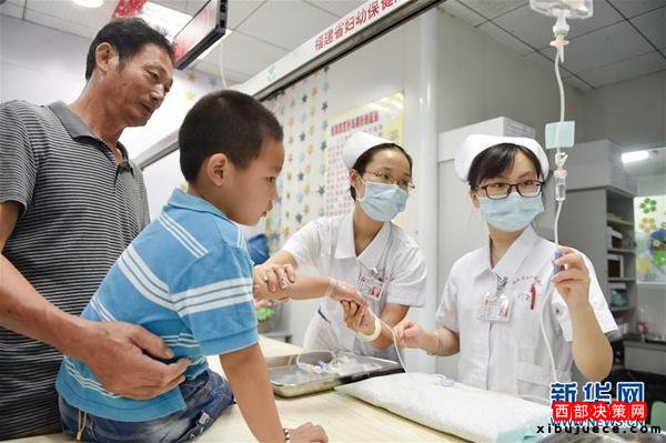 醫(yī)改地方在行動(dòng)。2016年8月,首期福建省內(nèi)10家公立醫(yī)療機(jī)構(gòu)正式簽訂協(xié)議,成立福建首個(gè)婦幼醫(yī)聯(lián)體。圖為在福建省婦幼保健院,醫(yī)護(hù)人員為患兒打點(diǎn)滴。