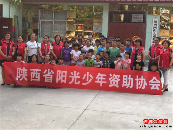 陜西省陽光少年資助協(xié)會(huì)志愿者與兒童合影