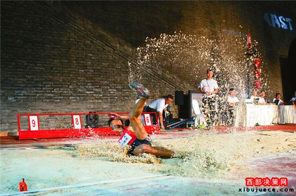 在厚重的西門(mén)甕城里搭建一個(gè)專(zhuān)業(yè)的跳遠(yuǎn)沙坑,然后再集合一群國(guó)內(nèi)頂尖的跳遠(yuǎn)高手。這樣的畫(huà)面可能對(duì)于很多人來(lái)說(shuō)可能有些穿越,但9月3日它卻實(shí)實(shí)在在的上演了——中國(guó)田徑街頭巡回賽2016跳遠(yuǎn)比賽首次來(lái)到了西安,包括3位里約奧運(yùn)會(huì)選手在內(nèi)的國(guó)內(nèi)八名跳遠(yuǎn)高手,為古城的田徑迷奉獻(xiàn)了一場(chǎng)高水準(zhǔn)的跳遠(yuǎn)比賽。
