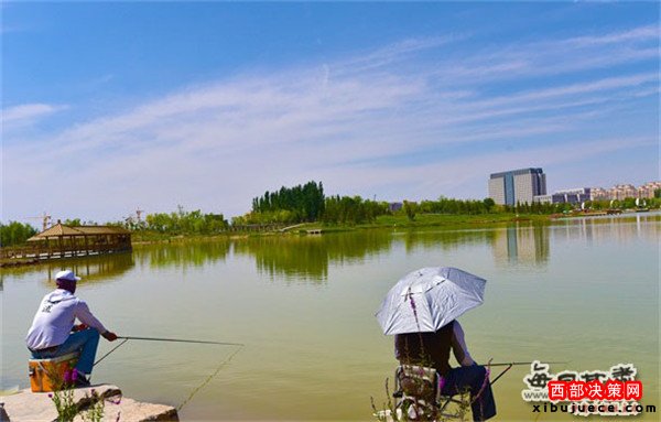 9月4日,“文博會網(wǎng)絡宣傳周”采訪團75家媒體近百名記者一行走進蘭州新區(qū)時,就被碧波蕩漾的2號湖濱區(qū)所吸引,湖邊盛開著紅的、黃的、紫的鮮花,湖里隱約可見各種彩色的錦鯉,游人或愜意地在湖邊垂釣,或聚集在觀景臺欣賞音樂噴泉,或悠然自得地泛舟湖上。