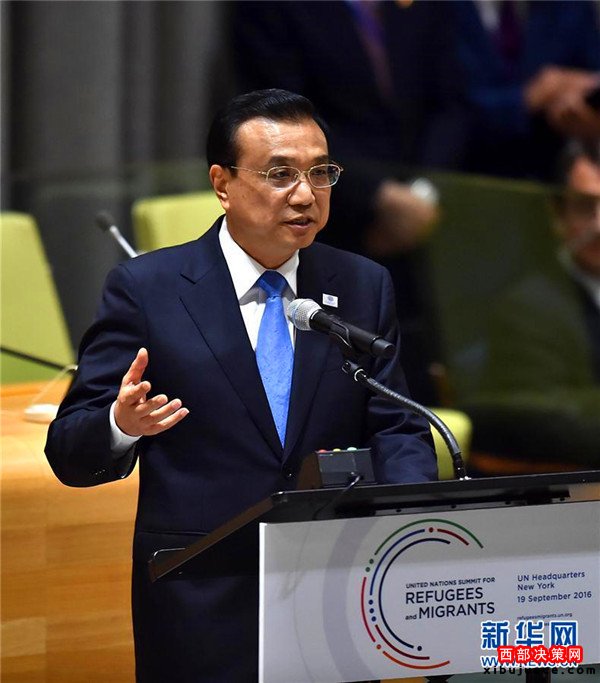 國務(wù)院總理李克強(qiáng)當(dāng)?shù)貢r間19日上午在紐約聯(lián)合國總部出席第71屆聯(lián)大解決難民和移民大規(guī)模流動問題高級別會議并發(fā)言。
