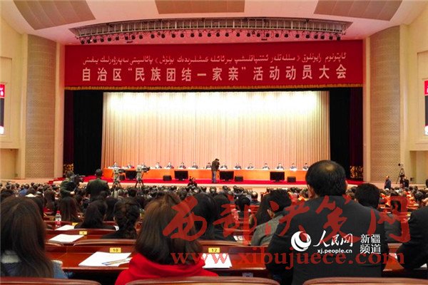 今天(10月16日)在烏魯木齊召開的新疆維吾爾自治區(qū)“民族團(tuán)結(jié)一家親”活動(dòng)動(dòng)員大會(huì)上,宣讀了自治區(qū)《關(guān)于開展“民族團(tuán)結(jié)一家親”活動(dòng)實(shí)施方案》,要求確?;顒?dòng)全覆蓋:自治區(qū)本級(jí)行政事業(yè)單位11萬干部職工與南疆四地州基層群眾結(jié)對(duì)認(rèn)親;新疆各地州市全體干部職工與本地基層群眾結(jié)對(duì)認(rèn)親;“訪民情、惠民生、聚民心”活動(dòng)住村工作組成員與所在村群眾結(jié)對(duì)認(rèn)親,各單位其他人員與本單位“訪惠聚”工作組所在村群眾結(jié)對(duì)認(rèn)親;中央國家部委和19個(gè)省市援疆干部與受援地基層群眾結(jié)對(duì)認(rèn)親。