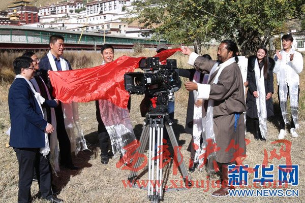 這是10月17日拍攝的開機(jī)儀式。當(dāng)日,由西藏自治區(qū)黨委宣傳部、吉林省委宣傳部重點(diǎn)扶持,吉林省援藏干部中心組、日喀則市委宣傳部積極推動(dòng),中聞?dòng)耙暋㈤L影集團(tuán)聯(lián)合攝制的援藏題材藝術(shù)片《風(fēng)中的紅景天》在西藏日喀則開機(jī)。電影《風(fēng)中的紅景天》講述了援藏醫(yī)生凌雪峰十年后再回西藏,與初戀女孩格桑梅朵再次相遇的動(dòng)人故事。