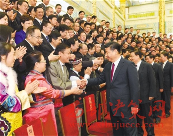 上午9時(shí)30分,習(xí)近平等來到人民大會(huì)堂金色大廳,同代表們親切握手,并合影留念。