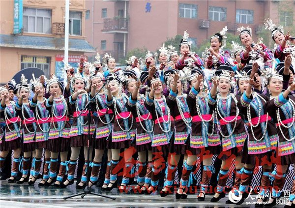 11月12日,在三江侗族自治縣多耶廣場,侗族同胞在表演侗族大歌。
