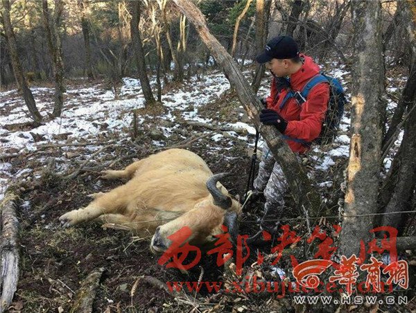 11月13日,西安市民米女士與朋友一起到秦嶺爬山,當(dāng)日上午10時許,她們走到小王澗保護(hù)區(qū)附近,發(fā)現(xiàn)一頭被人下套勒死的羚牛。由于當(dāng)時山上沒有信號,米女士和朋友沒能立即報警,他們也沒有破壞現(xiàn)場,只拍了幾張照片便離開了。根據(jù)米女士提供的照片看,一頭羚牛脖子上勒著一根鋼絲躺在地上,它身下一片狼藉,像是掙扎所造成的。