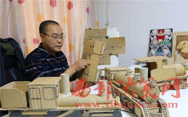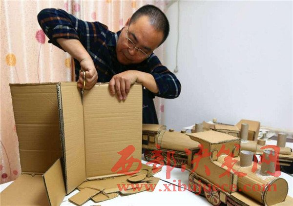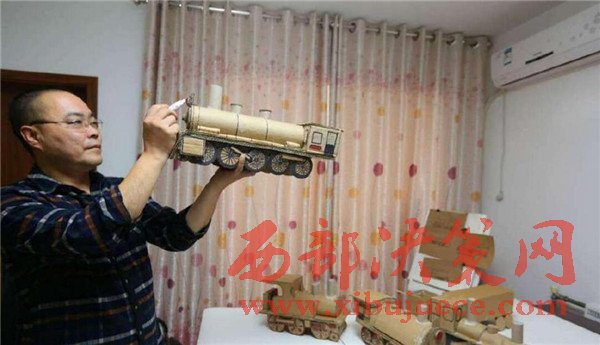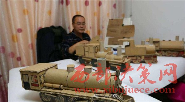 【廢舊紙箱變成精美的老式“蒸汽火車(chē)”】廢舊紙箱、紙盒能做什么呢?大多數(shù)人都會(huì)把它當(dāng)成廢品賣(mài)掉了,而市民王小龍卻變廢為寶地將其制作成了4個(gè)精美的老式“蒸汽火車(chē)”。11月20日,記者來(lái)到丈八北路附近的王小龍家中,剛下班的他顧不上休息,已經(jīng)在工作臺(tái)前做起微型“蒸汽火車(chē)”的車(chē)廂,已經(jīng)做好的4個(gè)微縮版的老式“蒸汽火車(chē)”醒目地?cái)[在桌子上,讓人眼前一亮。這些“蒸汽火車(chē)”全是用廢舊的紙箱、紙盒手工制作,司機(jī)室、鍋爐、煙囪、大燈、車(chē)輪等,樣樣都有。