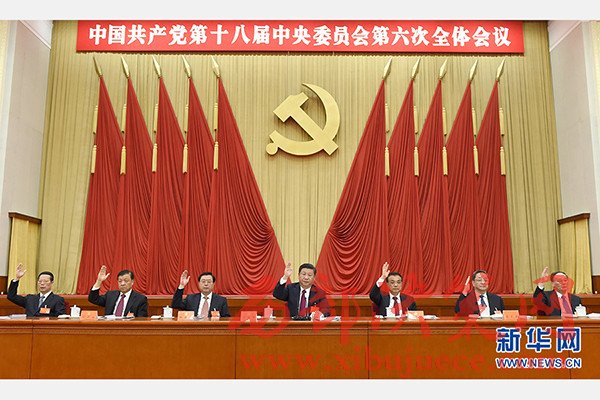 中國共產(chǎn)黨第十八屆中央委員會(huì)第六次全體會(huì)議,于2016年10月24日至27日在北京舉行。這是習(xí)近平、李克強(qiáng)、張德江、俞正聲、劉云山、王岐山、張高麗等在主席臺(tái)上。新華社記者李學(xué)仁攝