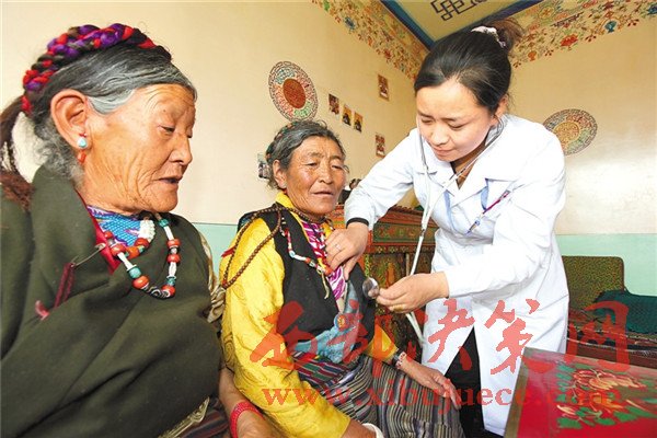 五保集中供養(yǎng)工程,是我區(qū)出臺的一項重大民心工程和德政工程。如今我區(qū)的孤寡老人們在黨和政府的關(guān)懷下,生活起居得到了有效保障,實現(xiàn)了老有所養(yǎng)、老有所樂、病有所醫(yī)。圖為日喀則市桑珠孜區(qū)敬老院的醫(yī)護(hù)人員在為老人們檢查身體。