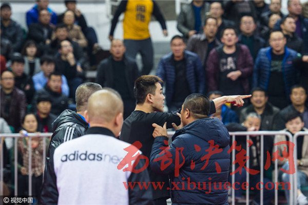 第一次薛飛走向籃架的時(shí)候,看臺(tái)上的球迷們就情緒激動(dòng)地起哄,大罵“打他!打他!”