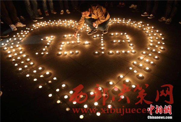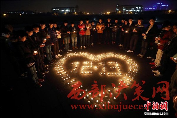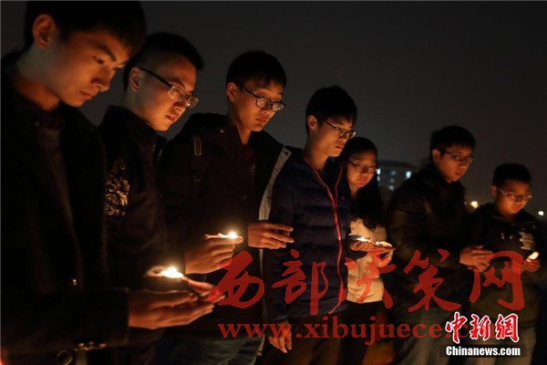 12月12日晚,在第三個國家公祭日前夜,主題為“愿逝者安息,為生者祈福”的燭光祭活動在南京東南大學九龍湖校區(qū)內(nèi)舉行,來自該校機械工程學院的大學生們點燃蠟燭,擺放成心形和1213字樣,為南京大屠殺死難者集體默哀,寄托哀思。