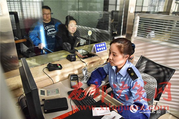 12月15日,內蒙古包頭站售票員熱情服務旅客。