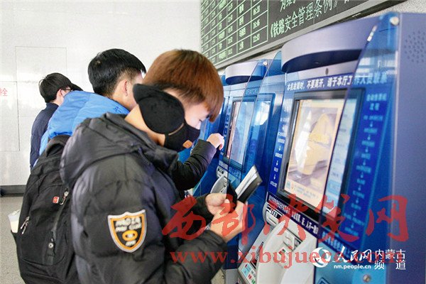 12月15日,旅客在包頭站自助售票機購票。