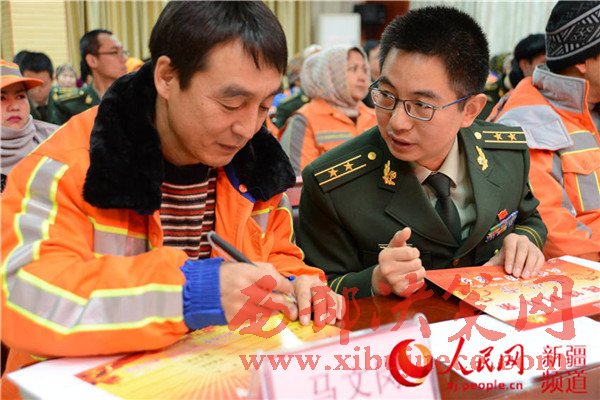 烏魯木齊邊檢站官兵與“親戚”填結(jié)對卡。