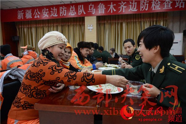 烏魯木齊邊檢站官兵與"親戚"一同包鉸子吃團(tuán)圓飯