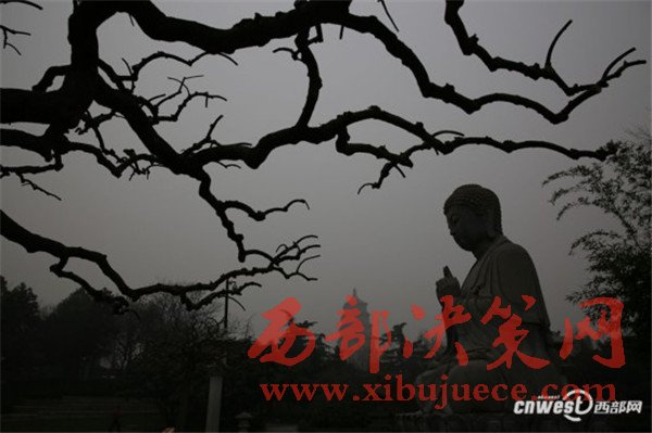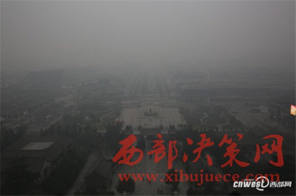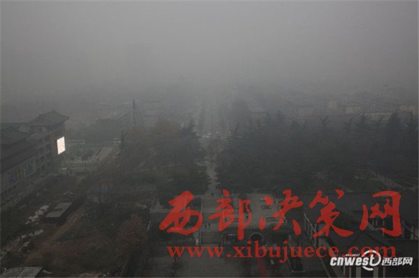 12月20日,西安市空氣質量指數(shù)接近500,空氣質量嚴重污染,昨日西安市首次啟動重污染天氣Ⅰ級應急響應,今日繼續(xù)執(zhí)行重污染天氣Ⅰ級應急響應,幼兒園、中小學停課,機動車限行50%。重度霧霾的大雁塔失去了千年古色,稍遠一點看大雁塔若隱若現(xiàn),再走遠一點大雁塔在視線中消失。登上大雁塔頂層,從東南西北四個窗口拍下的照片幾乎一模一樣。