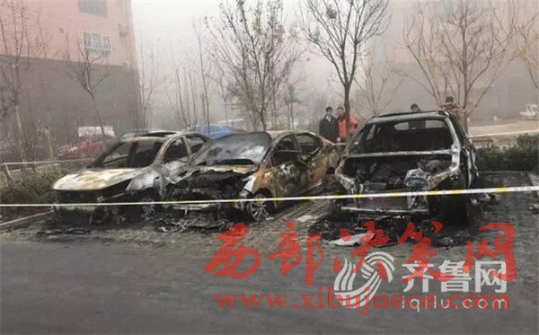早晨六七點鐘,有居民發(fā)現(xiàn),停在小區(qū)樓下的幾輛汽車著火了。小區(qū)居民表示,當時聽見響,還以為撞車了,一看原來是車著了,趕緊喊救火。