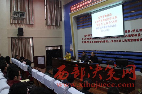 西部決策網(wǎng)訊(任書彥 郭宏娟)  12月19日至20日,寶雞市教育局在陳倉(cāng)區(qū)開展了義務(wù)教育課堂教學(xué)改革“新常態(tài)·大視導(dǎo)”活動(dòng)。本次視導(dǎo)由寶雞市教育局副局長(zhǎng)吳燕玲任組長(zhǎng),從行政和專業(yè)兩個(gè)層面,深入寶雞市陳倉(cāng)區(qū)教體局及千渭初中、慕儀初中、實(shí)驗(yàn)小學(xué)、西堡小學(xué)、渭陽(yáng)小學(xué)等5所課改學(xué)校,通過(guò)聽取匯報(bào)、實(shí)地走訪、查閱資料、問(wèn)卷調(diào)查、召開師生及家長(zhǎng)座談會(huì)、課堂觀摩、示范教學(xué)、講座論壇、現(xiàn)場(chǎng)反饋等多種形式,對(duì)寶雞市陳倉(cāng)區(qū)義務(wù)教育課堂教學(xué)改革情況進(jìn)行了全方位、深層次的調(diào)研指導(dǎo)。