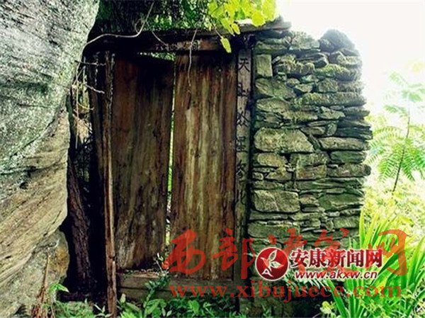 經(jīng)過4個多小時的艱難跋涉,考察隊終于來到了一塊巖石下面,這里相對剛才行徑的森林視野開闊了許多,可以看到別的山頭,巖石下面,有一道古樸的木門,直覺告訴考察隊,仙魚洞到了。