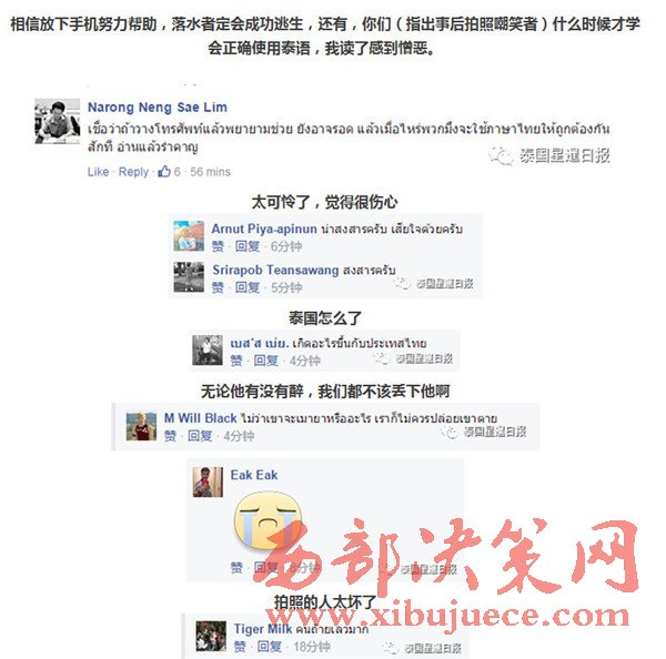 近日,據(jù)泰國網(wǎng)友稱,他的一位朋友因喝酒后頭暈,不慎跌入河道,由于不會水性,因此只能掙扎,并舉手向路人求救,而路人看見后立即沖上前,緩緩掏出手機,開始各角度拍照,生怕自己錯過了什么趣聞,并發(fā)送至臉書平臺,同時貼文表示,一弱智掉水里了,多名網(wǎng)友還回應(yīng)道:“他怎么掉下去的?哈哈哈。”