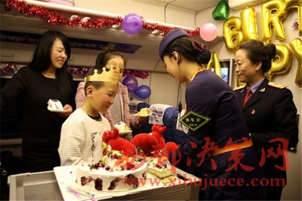 “祝你生日快樂”,2月5日,在蘭州西開往西寧的D2723次列車上,為一對“天路母子”舉行的別樣生日聚會(huì)引得網(wǎng)名點(diǎn)贊無數(shù)。