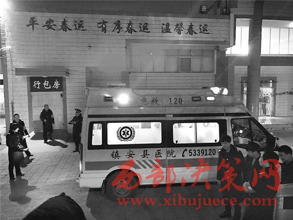 2月4日19時55分,重慶北開往呼和浩特東的K1536次緩緩地進站停妥,如同往常一樣,站臺的工作人員有條不紊地組織著K1536次旅客乘降工作。“西安端乘降完畢……等等,1號,K1536次1號臥鋪車廂列車員要交個病人下車醫(yī)治,是個孕婦,你過來下”!當班的客運值班員王麗英,從站臺中部邊奔跑著,邊詢問了解情況。正在站臺盯控值班的黨總支書記趙鵬、車站站長何曉輝、安全員呂建軍、客運主任冀文娟立即緊隨上前了解情況,隨即通知客運員許劍鋒立即撥打120,詳細告知情況,安排好隨車醫(yī)護人員,并安排站臺工作人員準備好椅子、被褥等簡單的輔助用品。將兩名旅客接下,等待救護車的時候了解到,丈夫譚超、妻子鐘紅英都是重慶人,妻子已經懷孕8個多月,預產期在2月20日左右,帶著2歲半的大兒子,原計劃坐火車從重慶到寶雞生產,沒想到剛到鎮(zhèn)安站停車期間突然感到身體不適,有臨盆現象,不得已才要求下車。