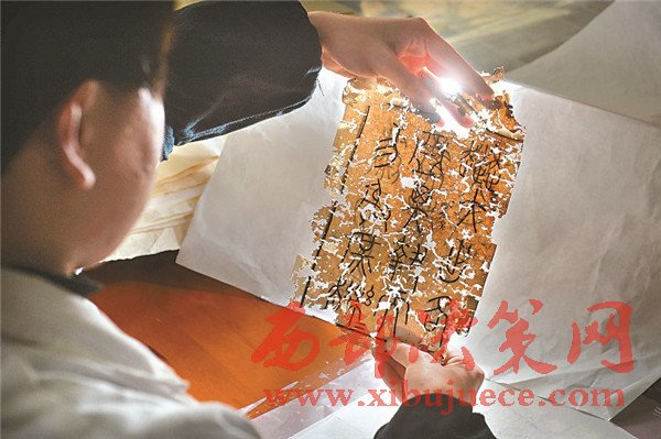 修復(fù)師經(jīng)仔細(xì)揣摩,用最接近古拓片原本的墨色來修復(fù)殘損部分。