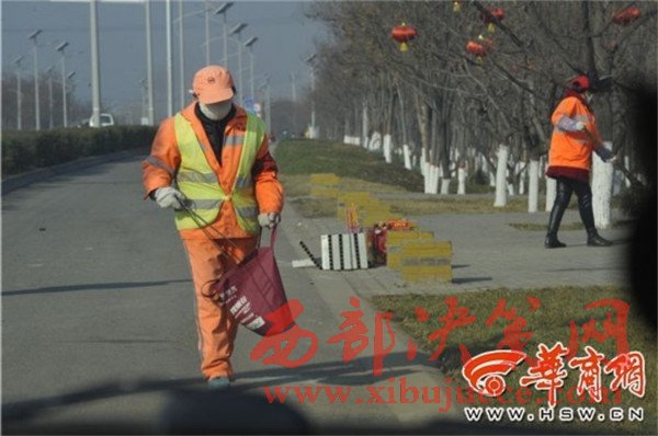 從十字路口向南約450米長的東側(cè)道路都屬于潘雙成的保潔區(qū),自從西安開展環(huán)境大整治治理以來,“綠化帶里的垃圾都撿干凈了,現(xiàn)在就是巡查著看看隨意丟棄的垃圾。”潘雙成說,環(huán)境大整治不但要求保潔員的工作更加細(xì)致,也要求沿街商戶注意保持門前區(qū)域干凈衛(wèi)生,“垃圾清掃車也加大清掃頻次,除了路面上比較明顯的垃圾以外,灑水車和清掃車也會(huì)把一些小垃圾集中到路邊來,我們清掃起來也比較方便。”潘雙成說,路面沒有煙頭、果皮紙屑是清掃的基本要求,“就像這條道路,偶爾有貨車拋撒的垃圾就比較費(fèi)勁,但是從車內(nèi)隨意向外丟棄垃圾的現(xiàn)象明顯減少了,只有在十字路口,一些等待紅燈的車?yán)飼?huì)隨便丟下煙頭,這時(shí)候也注意不到,等到車開走了才能看到,所以我經(jīng)常在十字路口多等上一段時(shí)間,看見煙頭就掃干凈。”