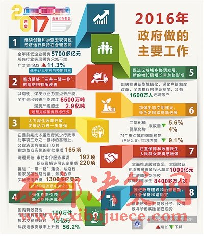 國(guó)務(wù)院總理李克強(qiáng)5日在作政府工作報(bào)告時(shí)說(shuō),過(guò)去一年,我國(guó)發(fā)展面臨國(guó)內(nèi)外諸多矛盾疊加、風(fēng)險(xiǎn)隱患交匯的嚴(yán)峻挑戰(zhàn)。在以習(xí)近平同志為核心的黨中央堅(jiān)強(qiáng)領(lǐng)導(dǎo)下,全國(guó)各族人民迎難而上,砥礪前行,推動(dòng)經(jīng)濟(jì)社會(huì)持續(xù)健康發(fā)展。黨的十八屆六中全會(huì)正式明確習(xí)近平總書記的核心地位,體現(xiàn)了黨和人民的根本利益,對(duì)保證黨和國(guó)家興旺發(fā)達(dá)、長(zhǎng)治久安,具有十分重大而深遠(yuǎn)的意義。各地區(qū)、各部門不斷增強(qiáng)政治意識(shí)、大局意識(shí)、核心意識(shí)、看齊意識(shí),推動(dòng)全面建成小康社會(huì)取得新的重要進(jìn)展,全面深化改革邁出重大步伐,全面依法治國(guó)深入實(shí)施,全面從嚴(yán)治黨縱深推進(jìn),全年經(jīng)濟(jì)社會(huì)發(fā)展主要目標(biāo)任務(wù)圓滿完成,“十三五”實(shí)現(xiàn)了良好開(kāi)局。