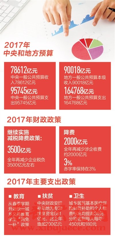 雖然赤字率與去年持平,但因?yàn)榻?jīng)濟(jì)總量擴(kuò)大,今年赤字為23800億元,比2016年增加2000億元。2000億元的新增財(cái)力,為加大重點(diǎn)領(lǐng)域支出創(chuàng)造了條件。