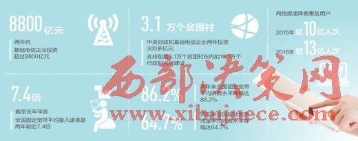 陳肇雄介紹,兩年來,工信部會同有關部委,扎實推進網(wǎng)絡提速降費相關工作落實。圍繞網(wǎng)絡提速,一是深入推進寬帶中國戰(zhàn)略。兩年內(nèi)基礎電信企業(yè)投資超過8800億元,國家發(fā)改委安排中央預算內(nèi)投資10億元,專項建設基金480億元,建成了全球規(guī)模最大的固定光纖和移動4G網(wǎng)絡。二是加快實施電信普遍服務。中央財政和基礎電信企業(yè)兩年投資300多億元,支持包括3.1萬個貧困村在內(nèi)的10.1萬個行政村光纖建設。三是優(yōu)化互聯(lián)網(wǎng)骨干網(wǎng)網(wǎng)絡結構。擴容骨干網(wǎng)網(wǎng)間互聯(lián)帶寬1562G,新增3個互聯(lián)網(wǎng)骨干直聯(lián)點,總數(shù)達到了13個。截至2016年年底,全國固定寬帶平均接入速率達到49M,是兩年前的7.4倍。光纖寬帶用戶占比從34.1%提升到76.6%,進入全球前三位。根據(jù)中國寬帶聯(lián)盟發(fā)布的數(shù)據(jù),我國移動寬帶網(wǎng)絡用戶平均體驗速率已經(jīng)從3G的3.9M提升到目前4G的11.9M。4G用戶已經(jīng)達到7.7億戶,占全球4G用戶的一半以上。