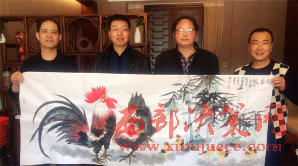 我畫(huà)的公雞被公雞鹐了:畫(huà)雞已經(jīng)成了他每天的必修課,2004年12月的一天,他下班回家吃過(guò)晚飯,到后院抱了一只公雞到屋里準(zhǔn)備觀察做畫(huà),他把公雞放在地上,由于新環(huán)境公雞的頭上下左右窺視看看四周。突然,公雞先是跳到了床上,然后從床上跳到箱子上,從箱子上飛向掛在墻上以前畫(huà)的雄雞,鹐了畫(huà)上雄雞的脖子。它把我畫(huà)的公雞誤當(dāng)成同類了,它向同類發(fā)起了攻擊,卻沒(méi)有發(fā)現(xiàn)那是我畫(huà)的畫(huà)??磥?lái)我畫(huà)的雞同類已經(jīng)無(wú)法分辨出來(lái)了,我要發(fā)誓必須努力的繼續(xù)畫(huà)下去。他非常激動(dòng)的介紹到。