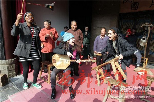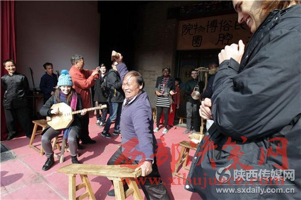 11月15日,北京大學燕京學堂的丹麥、以色列等42個國家的100多名外國留學生,來到西安了解中國傳統(tǒng)文化和城市發(fā)展及變化,在關中民俗藝術博物院,“老外”對華陰老腔產(chǎn)生濃厚興趣,現(xiàn)場向老藝人學唱華陰老腔。