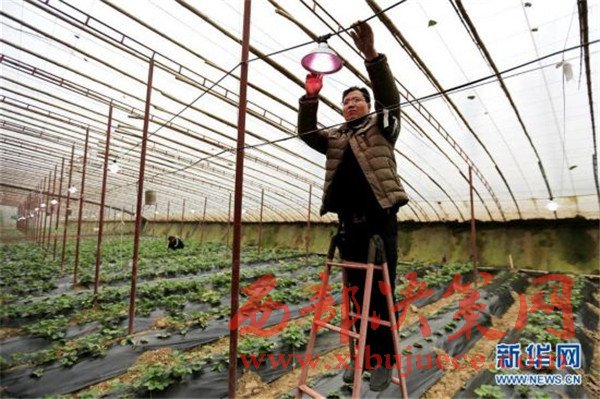 河北:農(nóng)民針對陰天及霧霾天氣在大棚內(nèi)裝植物生長燈