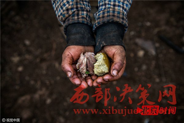 孩子拿著窩窩頭幾口就啃的快沒有了,水也沒有一口。我問他吃飽了。他睜大了眼睛看著我。卻不知道怎么回答。