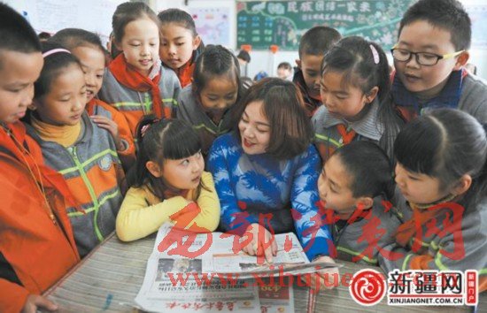 3月17日,在市第73小學(xué)三(6)班,班主任楊蓉和同學(xué)們一起學(xué)習(xí)習(xí)近平總書記在參加十二屆全國人大五次會議新疆代表團(tuán)審議時的重要講話精神。