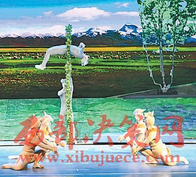 “融合雜技與舞蹈兩種藝術樣式,第一次把雪域精靈雪豹搬上舞臺;結合藏、漢民族文化,第一次通過文化融合反映藏民族生態(tài)觀。”安徽省雜技團團長陳堅介紹,在美妙的藏韻三人舞映襯下,用“頂板凳”表現(xiàn)強巴的異常才能;用“舞中幡”“敲擊戰(zhàn)鼓”“戲牦牛”的技藝,表達藏民們豪放堅強的性格;用“走鋼絲”“彈跳板”“騰空飛杠”等技藝,表現(xiàn)不畏艱險,攀過山崖,戰(zhàn)勝雪崩,采摘圣雪蓮;用“軟功滾杯”的少女,表現(xiàn)雪蓮花開的柔情似水,族人們安詳平靜的生活。