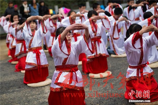 孩童著漢服行古禮拜師傅傳孝道