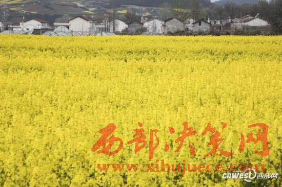 洋縣油菜花和白墻紅瓦相映成趣。