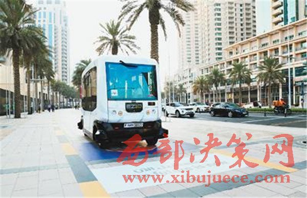 迪拜在市中心試運(yùn)營(yíng)的無(wú)人駕駛客車(chē)。
