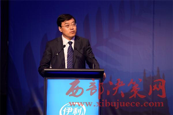 伊利集團董事長兼總裁潘剛在“伊利大洋洲生產(chǎn)基地(二期)揭牌暨金領冠睿護奶粉面世儀式”上發(fā)表主旨演講。