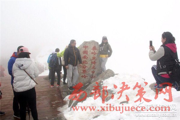 “山下百花盛開,玲瑯滿目,山上雪花飛舞,銀裝素裹”。來自湖南的游客王蕭然一行對太白山變化莫測的景象驚嘆不已,并紛紛把拍到的奇景分享在朋友圈。