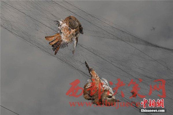2月14日,山西太原郊區(qū)的一間果園內(nèi),為了保護農(nóng)作物的果農(nóng)搭建了捕鳥網(wǎng),三百余只不同種類的鳥被網(wǎng)圍困致死,有些已腐爛風(fēng)干。