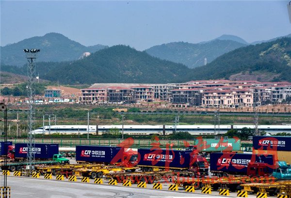4月15日,浙江義烏西站鐵路口岸,準(zhǔn)備通過中歐班列發(fā)往國外的集裝箱。“統(tǒng)一品牌中歐班列”作為國際貨物聯(lián)運的新型組織方式,已成為沿線各國加強(qiáng)基礎(chǔ)設(shè)施互聯(lián)互通、提升務(wù)實合作水平的重要載體和推進(jìn)“一帶一路”建設(shè)、促進(jìn)共問繁榮發(fā)展的重要平臺。