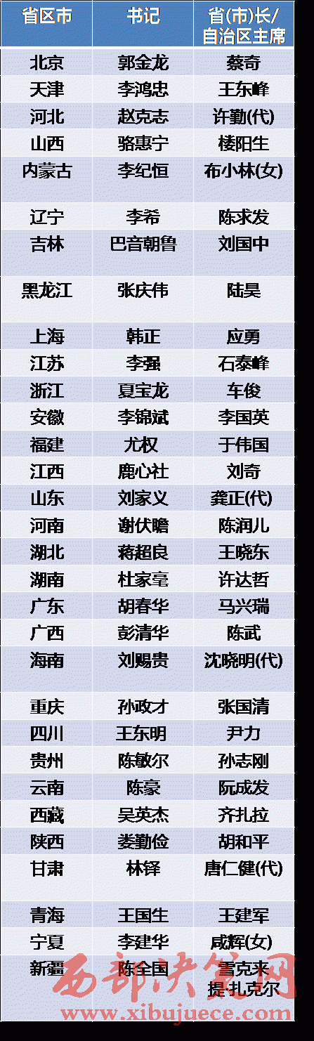 原標題:今年全國19名省級黨政“一把手”調整 最新現任名單