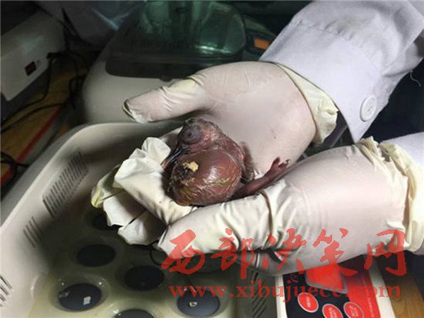 剛剛孵化出的小朱鹮(4月18日攝)。